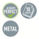 - Materiał: Podstawa metalowa z antypoślizgowym plastikowym pojemnikiem na ścinki / uchwyt z tworzywa sztucznego z metalową obwódką