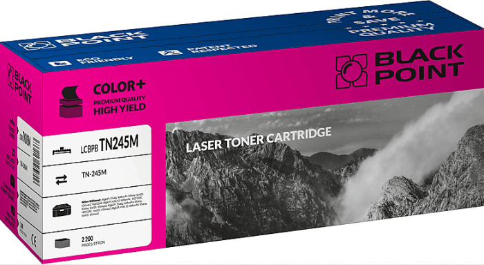 Toner BLACKPOINT LCBPBTN245M to niezawodny zamiennik tonera Brother TN-245M, przeznaczony do kolorowych drukarek laserowych Brother. Dzięki intensywnej barwie magenta, zapewnia wyraziste i nasycone wydruki – zarówno tekstowe, jak i graficzne. Wydajność do 2200 stron sprawia, że doskonale sprawdza się w biurach, firmach usługowych oraz u użytkowników domowych ceniących jakość i ekonomię.