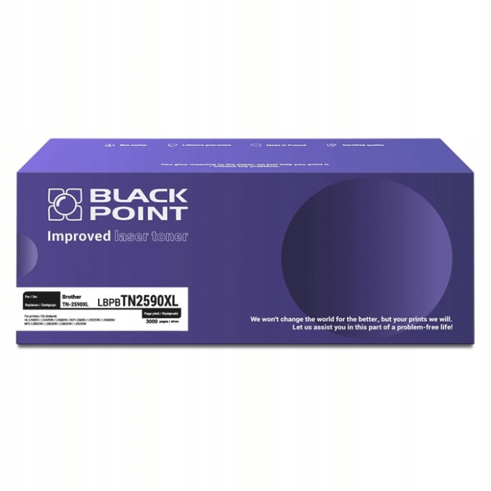 Toner Black Point w wersji TN-2590XXL to wysokowydajny zamiennik oryginalnego tonera Brother, przeznaczony do nowoczesnych drukarek laserowych tej marki. Zapewnia wyraźne, jednolite wydruki w głębokiej czerni oraz stabilną pracę urządzenia nawet przy intensywnym użytkowaniu. Idealny wybór do biura i domu, gdzie liczy się wysoka wydajność oraz realne obniżenie kosztów druku.