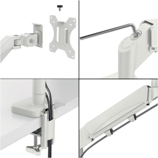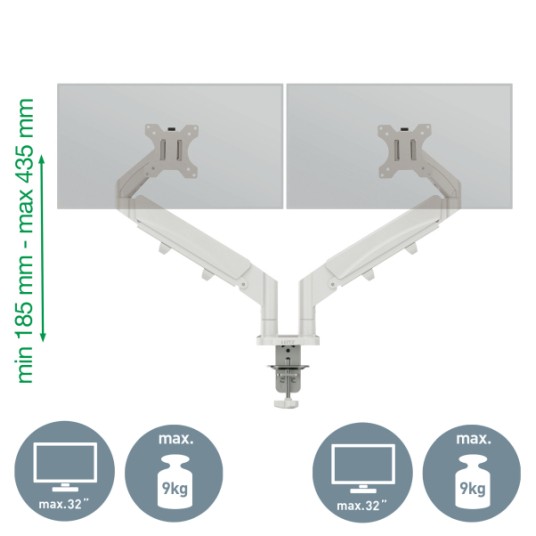 Cechy główne ✅ umożliwia ergonomiczne ustawienie dwóch monitorów na odpowiedniej wysokości ✅ pomaga utrzymać prawidłową postawę oraz wygodne ułożenie szyi i ramion ✅ niezależna regulacja obu ekranów zwiększa komfort codziennej pracy ✅ dwa ramiona ze sprężyną gazową zapewniają płynną regulację ✅ oszczędza miejsce na biurku i poprawia organizację stanowiska ✅ obsługuje monitory płaskie i zakrzywione o przekątnej od 17" do 32" ✅ krótsze ramię nośne ułatwia ustawienie ekranów o różnych rozmiarach ✅ system zarządzania kablami pomaga utrzymać porządek