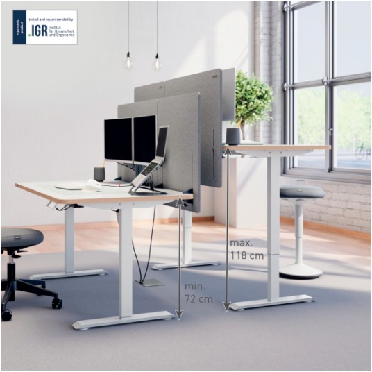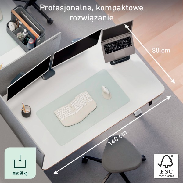 Zastosowanie • do pracy w pozycji siedzącej i stojącej w home office • do nowoczesnych biur i stanowisk współdzielonych • do przestrzeni studenckich i tymczasowych stanowisk pracy • do organizacji ergonomicznego stanowiska z dwoma monitorami