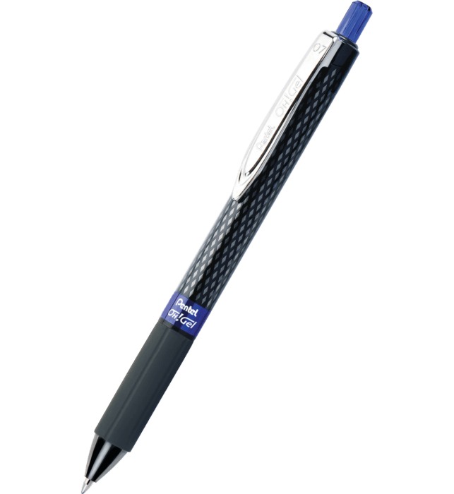 Długopis żelowy OH! Gel do częstego pisania w biurze i szkole. Bezkwasowy, pigmentowy, szybkoschnący tusz żelowy o bardzo ciemnym kolorze nie blaknie, nie rozmazuje się, jest odporny na szkodliwe działanie czynników zewnętrznych (jest światło i wodoodporny). Gładki przepływ tuszu do końcówki zapewnia lekkie pisanie. Korpus z motywami rombu w ciemnej stylistyce tła ze srebrnymi wykończeniami. Solidna obudowa dopasowuje się do ręki – gumowy uchwyt (bez lateksu) zabezpiecza palce przed ślizganiem. Dostępny w trzech wyrazistych kolorach: czarnym, niebieskim, czerwonym. Na wkłady wymienne KFR7. Model w atrakcyjnej cenie.