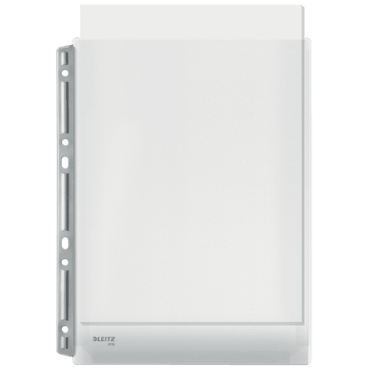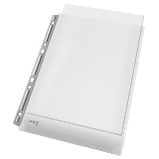 Koszulki z wzmocnionym metalowym paskiem i poszerzanym o 20 mm brzegiem, pomieszczą bez trudu obszerne dokumenty jak i katalogi, bez problemu wepniesz je również do segregatora.