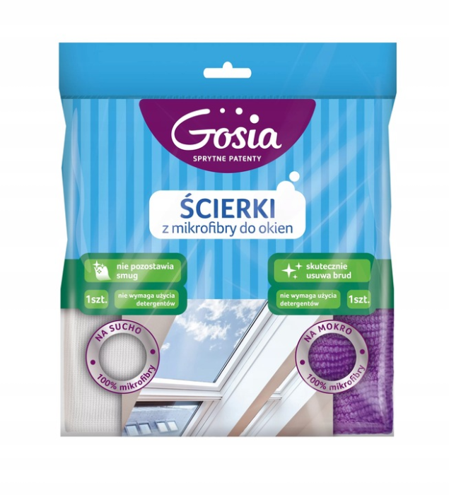 Zestaw ściereczek z mikrofibry GOSIA do mycia okien to praktyczne rozwiązanie, które ułatwia kompleksowe czyszczenie szyb i ram okiennych. Fioletowa ściereczka świetnie sprawdza się podczas mycia na mokro — jest chłonna, łatwo usuwa zabrudzenia i szybko wysycha po wypłukaniu.