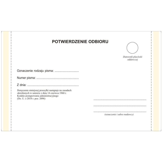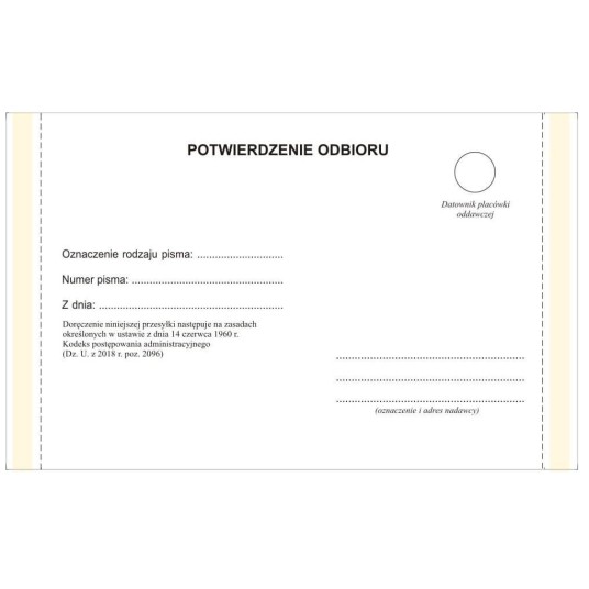 ✅ W tym wzorze podstawa prawna jest na stronie potwierdzenia odbioru, a więc adresat w chwili podpisania widzi ją, ponadto na tej zwrotce jest miejsce na podpis urzędnika, który przyjmuje wracającą do urzędu zwrotkę