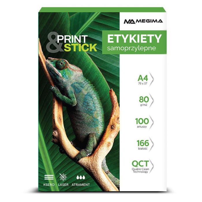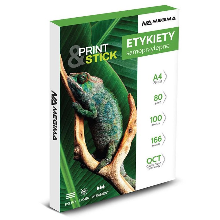 ETYKIETY SAMOPRZYLEPNE A4 MEGIMA 70 x 37 mm (PO 24 ETYKIETY NA 100 ARKUSZACH)