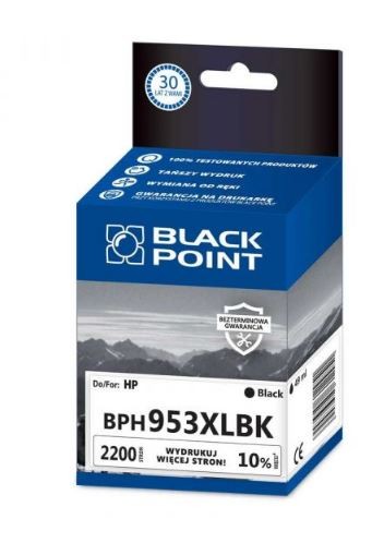 Black Point BPH953XLBK. Zastepuje HP L0S70AE. Kolor: black. Wydajnosc: 2200 str. (wiecej o 200 str. - ISO 24711). Pojemnosc: 49 ml. Kompatybilny z: HP OfficeJet Pro: 7720, 7730, 7740, 8210, 8218 8710, 8715, 8720, 8725, 8730, 8740