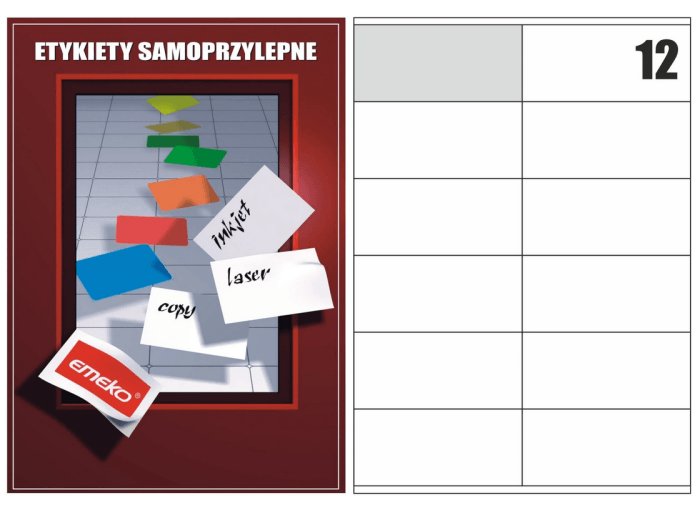• liczba etykiet na arkuszu: 12