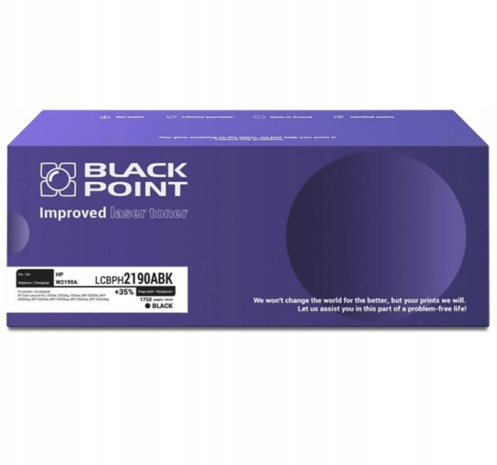 Toner Black Point HP 219A (LCBPH2190ABK) to wysokiej jakości zamiennik oryginalnego wkładu HP W2190A, przeznaczony do nowoczesnych drukarek laserowych z serii HP Color LaserJet Pro. Zapewnia wyraźny, głęboki czarny kolor, idealny zarówno do codziennych wydruków biurowych, jak i dokumentów wymagających wysokiej czytelności.