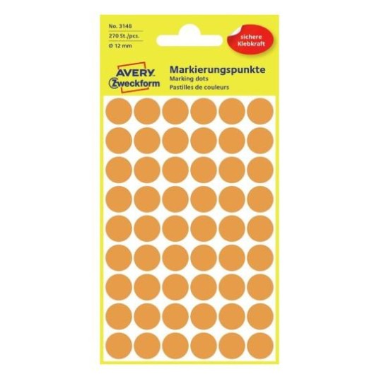 KÓŁKA AVERY 12mm TRWAŁE (270 SZTUK) (POMARAŃCZOWE NEONOWE)