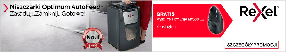 Kupując niszczarkę Rexel Optimum otrzymasz mysz Kensington Pro Fit™ Ergo MY630 EQ GRATIS!